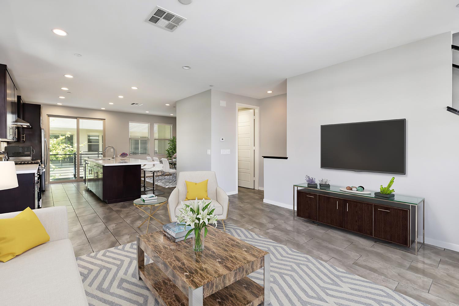 The townhome has a pre-wired security system, Ring doorbell and highly efficient AC + Heat and tankless water heater that keep utility costs down.